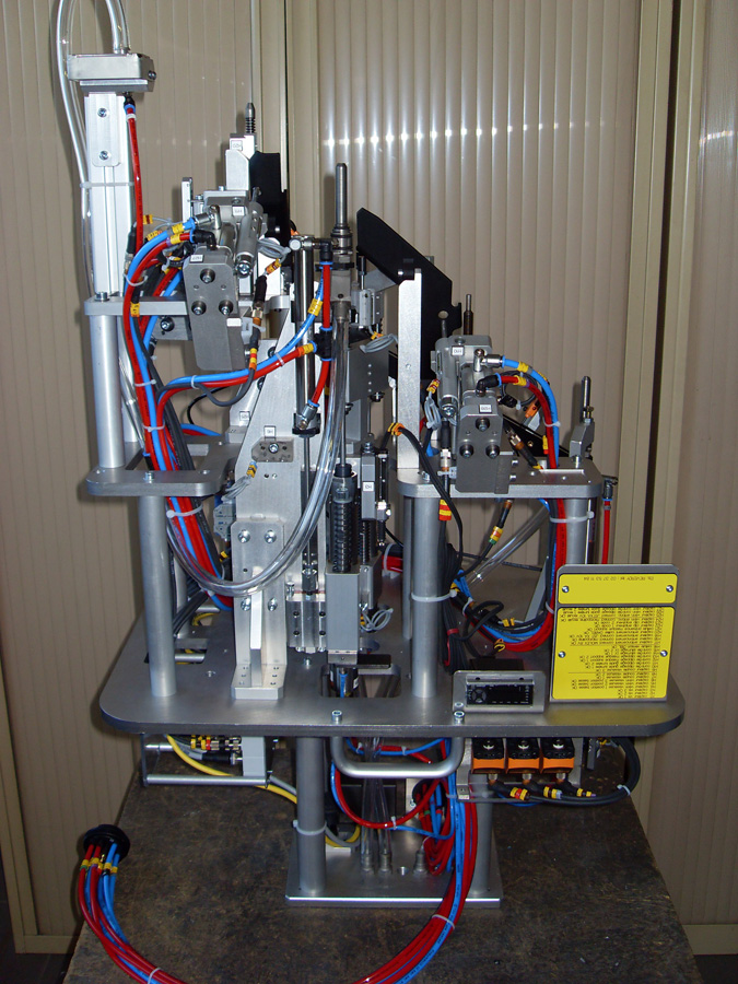 Outil de contrôle clippage et vissage avec fonction d'auto-éjection. En cours d'essai mécanique dans une presse d'assemblage.